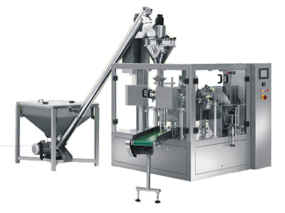 全自動定量包裝機的工作原理:物料由給料機構(氣動閘門)加入稱量斗,控制器收到傳感器的重量信號后,按預先設定的程序值進行控制,開始時進行快速(快加、中加、慢加同時)給料;當重量≥(目標值-粗計量值)時,停止快加信號輸出,進入中速(中加、慢加同時)給料;當重量≥(目標值-精計量值)時,停止中加信號輸出,進入慢速(慢加)給料;當重量≥(目標值-過沖量值)時,停止慢加信號輸出,給料門完全關閉,定值稱量完成。夾袋信號輸入后,稱量斗卸料門自動開啟,當重量≤零位設定值時,稱量斗卸料門自動關閉,物料袋自動松開落入輸送帶上,被送到縫包機縫包之后進入下一工序,同時控制器進入下一控制循環。該機設有自動保護裝置,如出現卡瓶現象,機器將自動停機保護人機安全。